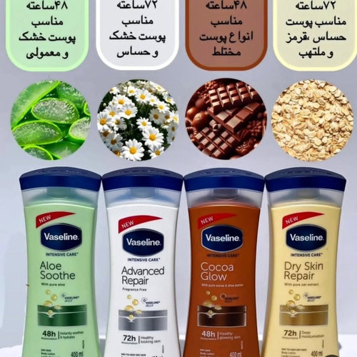لوسیون بدن وازلین ،محصول کشور لهستان،دارای ویتامین B3,ضدترک،آبرسانی و مرطوب کننده ۴۸ساعته،،